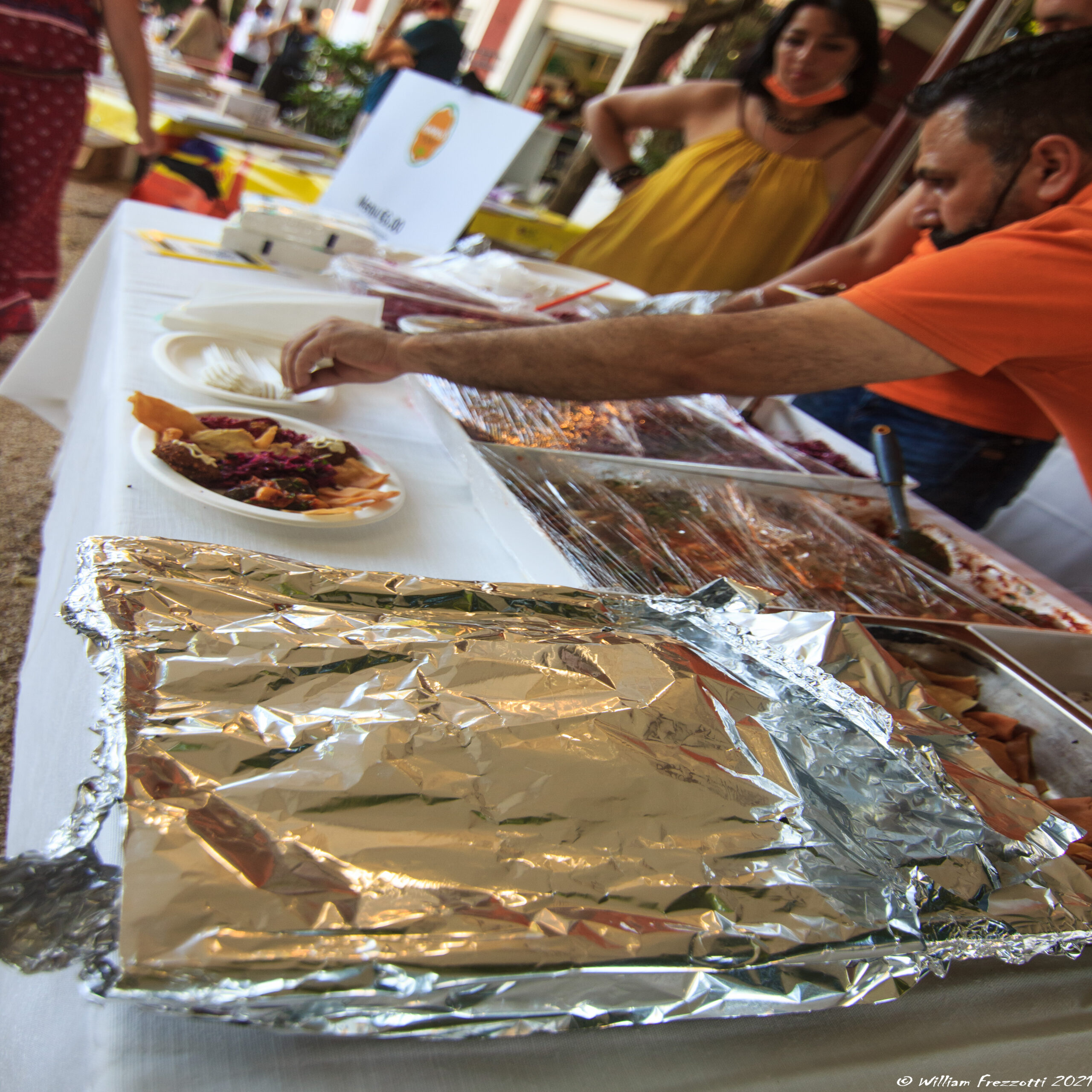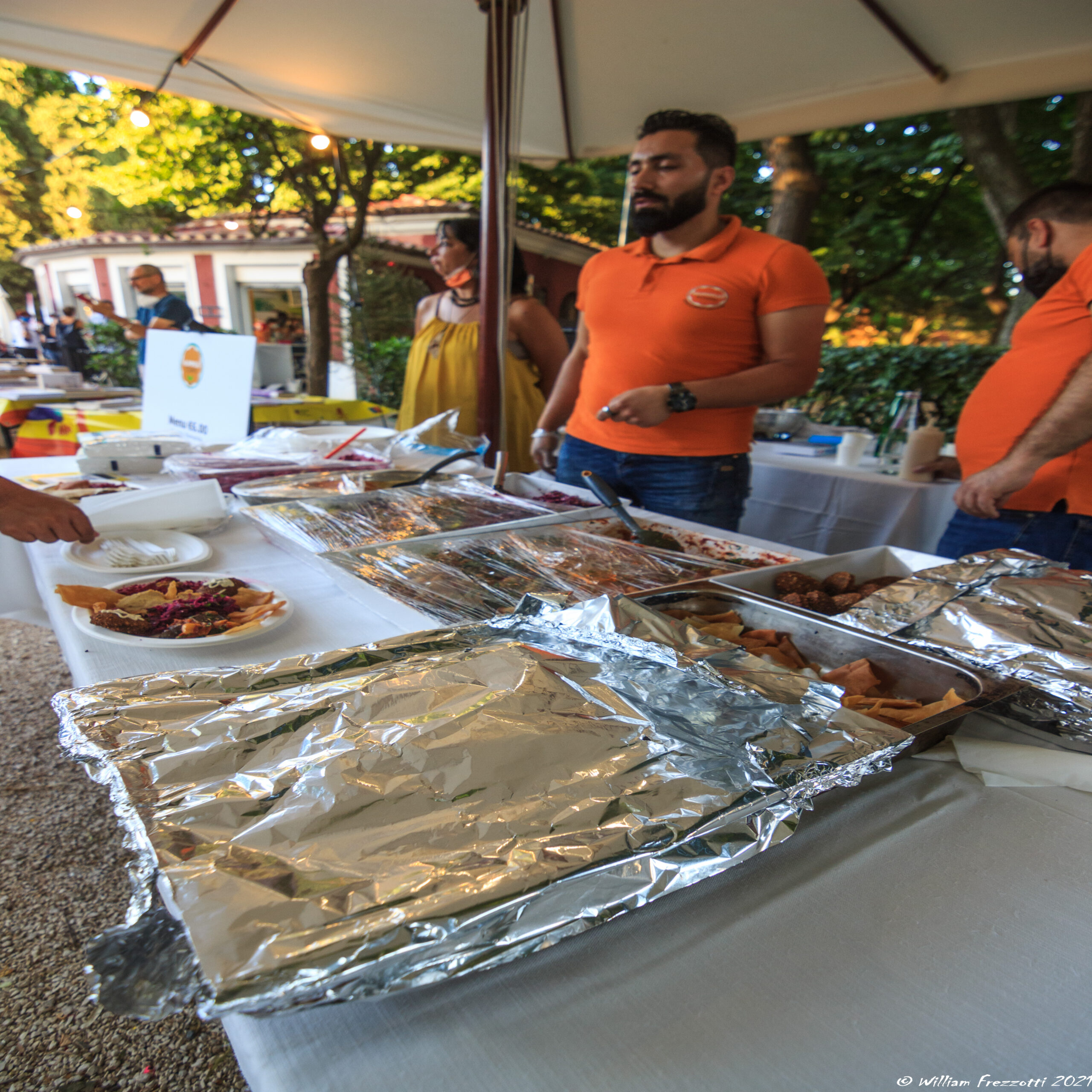 É tardi ed inizia a calare il sole. L’odore del cibo e delle spezie sale sempre più prepotentemente alle narici. Abbiamo decisamente fame e decidiamo di avvicinarci al bancone per prendere i gettoni targati UNHCR. Tutto il ricavato viene devoluto alle associazioni che hanno partecipato e sosterrà i loro progetti. Un motivo in più per decidere di fermarsi e assaggiare i piatti offerti nel festival.